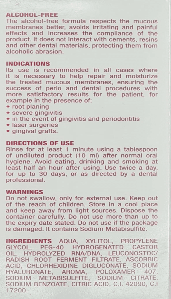 NEW EXTRA LARGE (500mls) MONTH SUPPLY – The Previous Perio Gum has been replaced with the NEW Curasept ADS Perio Pro Oral Rinse 0.12% Chlorhexidine with Hyaluronic Acid & DNA
